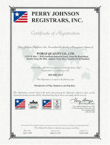 World Quality Co and Aderans Thai obtained ISO-9001-14001.