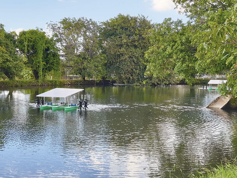 The factory has installed solar panels on the rooftop of the building to partially cover its electricity usage. Also, a solar-powered circulator is put in place to keep the water fresh in the pond on the premises (water for firefighting).
