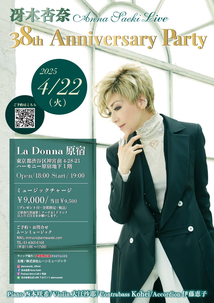 冴木さんのデビュー38周年を記念して4月22日(火)に開催されたアニバーサリーライブ「Anna Saeki Live 38th Anniversary Party」でも、フォンテーヌのウィッグをご使用いただきました。今後もアデランスは、冴木さんの活動をウィッグでサポートしてまいります。