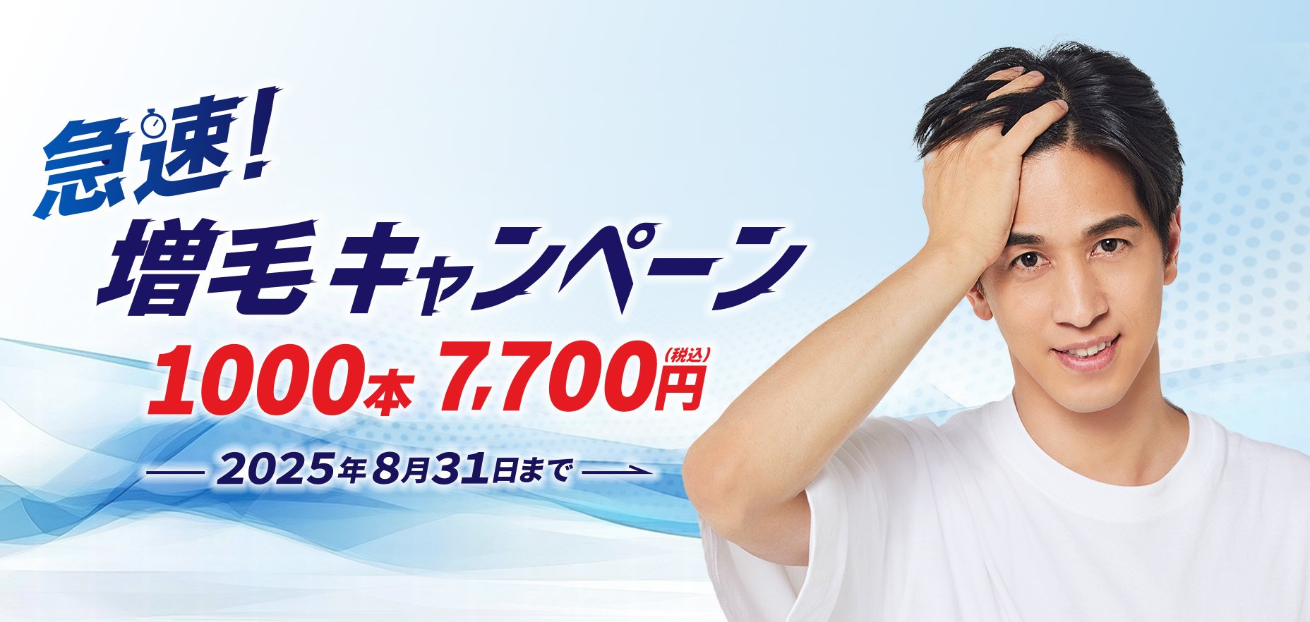 ゴールデンウィークや夏を迎えるこの時期に、"夏場の髪のボリューム不足が気になり始めた""短時間※1でパッとボリュームを足したい"といった思いをお持ちの方などに、増毛を1,000本7,700円(税込)でご体験いただけるキャンペーンです。増毛は自髪と同じようにお過ごしいただけるため、旅行やマリンスポーツなどをされる時にも髪悩みを気にせずにお過ごしいただけます※3。