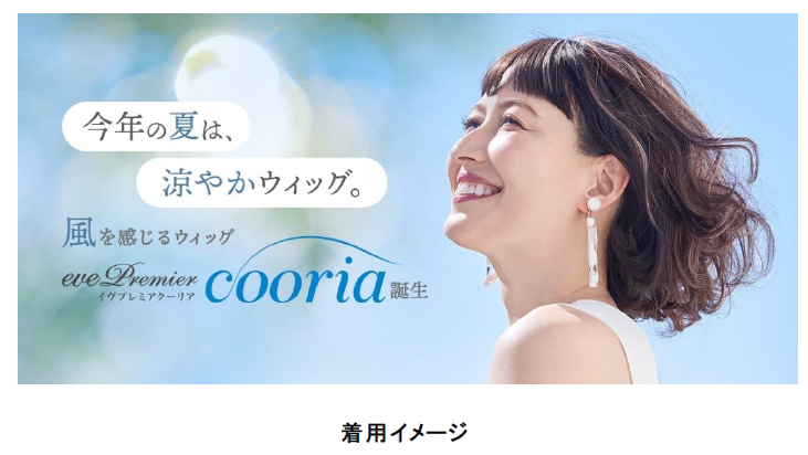 また、グラデーション効果によって自髪のような立体感を演出する染色加工「ヘアドゥ」や、根元から分け目・つむじをふんわり立ち上げる「ダブルアップ構造」など、見た目の自然さやスタイリングの自由度を高める様々なオプションも選択可能です。『イヴプレミアクーリア』は、"風を感じるウィッグ"をコンセプトに、爽やかな装着感を求める方、夏も髪悩みを気にせずに活発に旅行や外出をしたい、というアクティブな女性のために誕生しました。