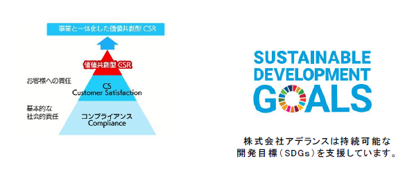 アデランスグループのCSR活動は、「社会的価値を持った活動」をさらに深め、広げていくことで、お客様や社会からの信頼に基づいた、健全で永続的な企業成長を目指すものです。こうした活動を「事業と一体化した価値共創型CSR」として進めています。