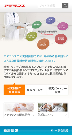 アデランス研究開発サイト(https://www.aderans.com/rd/)では、スマートフォン用のサイトを開設いたしました。
