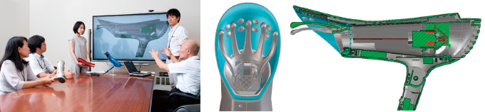 (左の会議写真)「N-LED Sonic」のデザインには関連事業部の多くの精鋭が関わった。