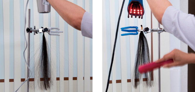 (右)「N-LED Sonic」 で乾かしてブラッシング。徐電され、潤いを保ち、櫛どおりも滑らかだった