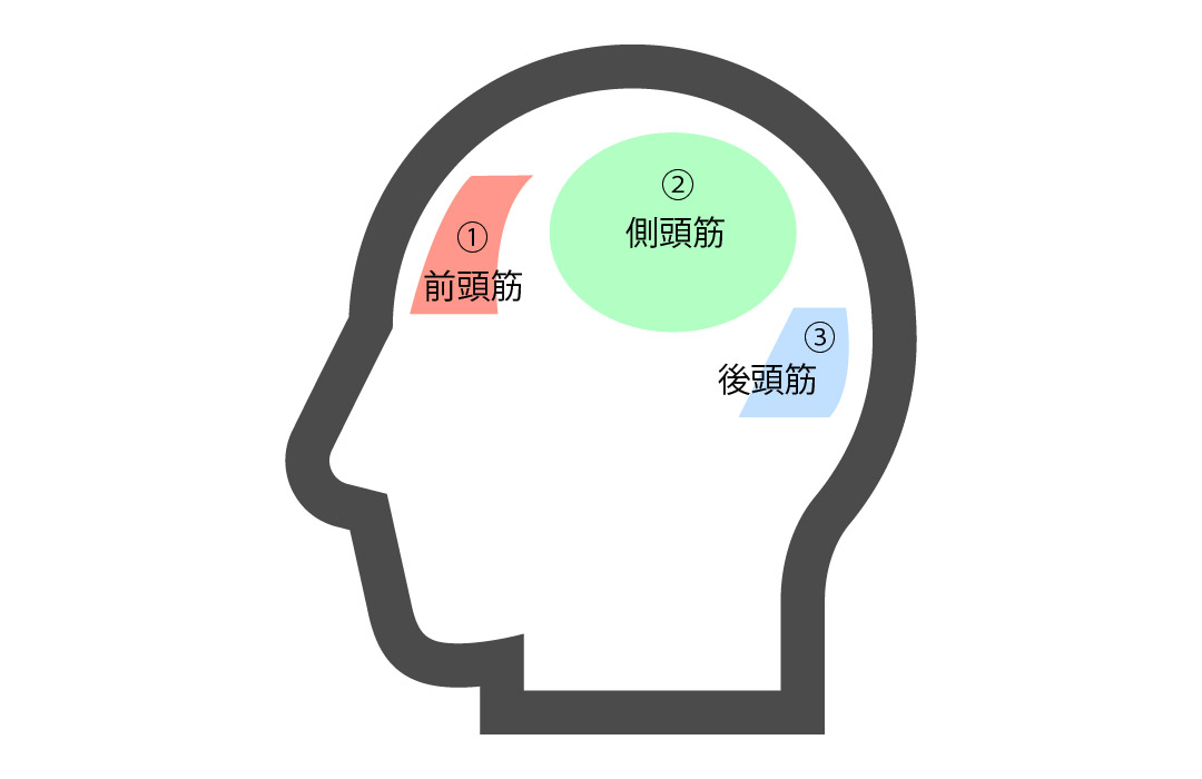 1.手のひらで頭の側面を覆い、しっかり押さえて大きく円を描くように頭皮を動かして揉みほぐす。