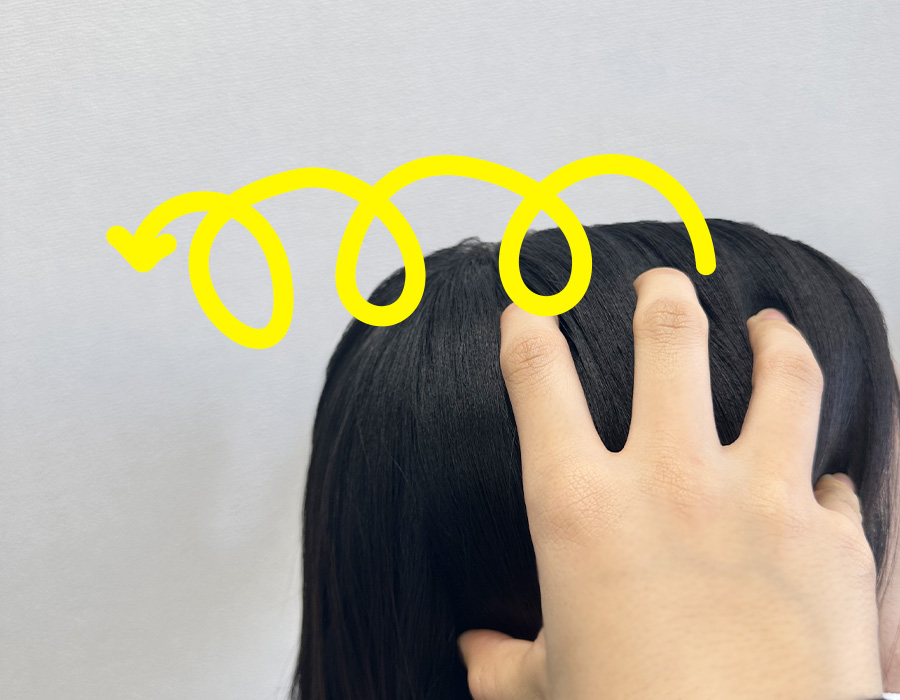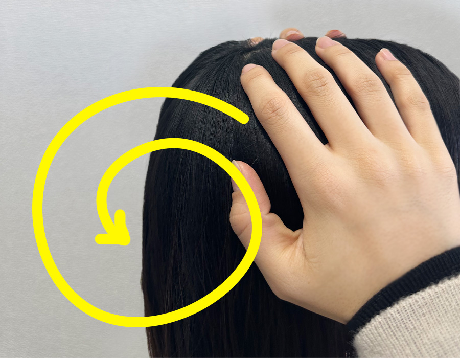 2.そのまま手で3回、円を描くように頭皮を揉む。