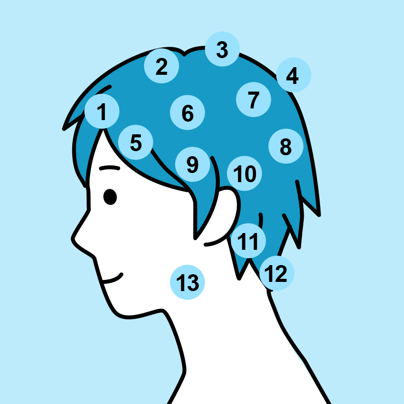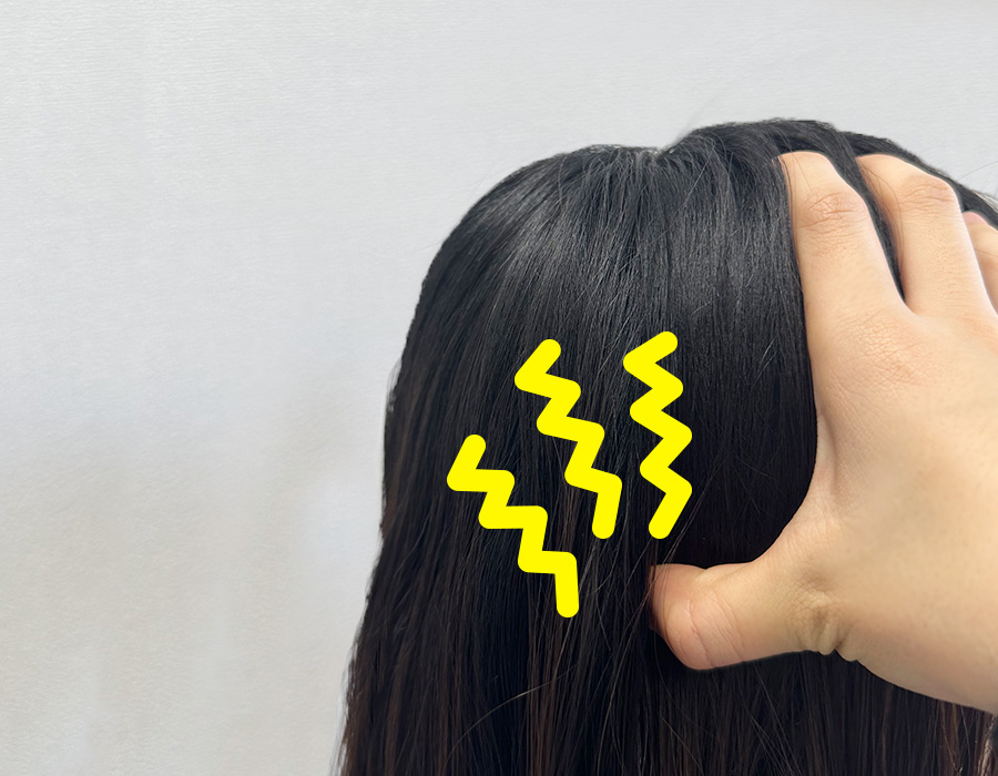 1.指の腹を使って、側面の頭皮をやさしく押す。