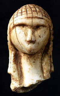 益子氏:ウィッグ(かつら)の始源は、約38,000年前(B.C.36,000)にも遡るといわれています。それは、フランスのランド地方ブラッサンプイで見つかった、この当時につくられたと思われる婦人像が、ウィッグ(かつら)のようなものをつけているからです。象牙彫りのこの婦人像の頭は、毛髪を編んだヘアネットのかぶりもののようなスタイルになっているんですね。おそらくこれが、今まで見つかった中で、一番古いウィッグ(かつら)の資料だと思われます。