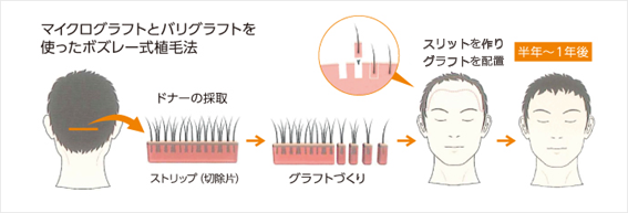 合成繊維でできた人工毛を植え込む手術です。拒絶反応や頭皮の炎症、細菌感染などの副作用がおこる可能性はありますが、広範囲の植毛が可能で施術時間が短く、すぐに毛髪を増やしたいという方の選択肢となりえます。