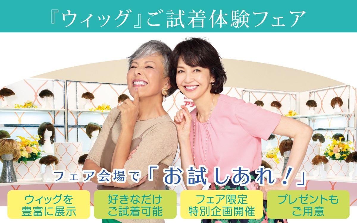 全国の百貨店や駅に近い展示会場で行われる『ウィッグ』ご試着体験フェア。「ちょっと見てみたいけど、予約は勇気がいるし…」という方でも安心。ショッピングやお出かけの合間に気軽にお立ち寄りください。