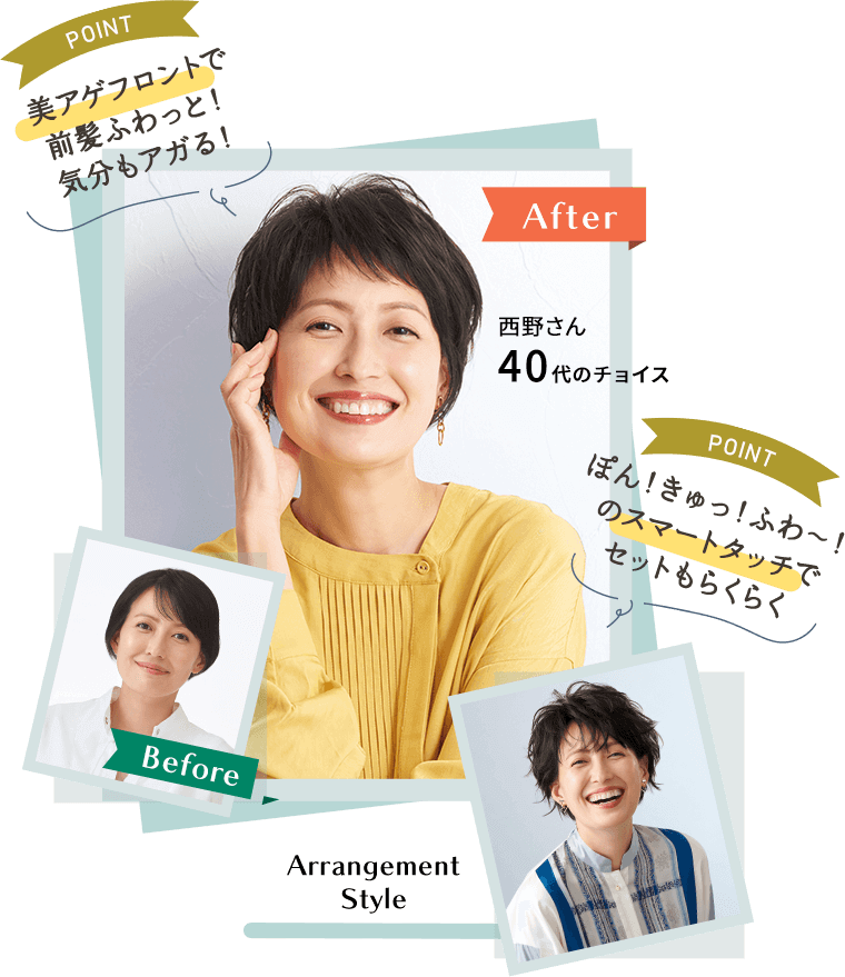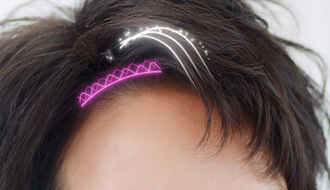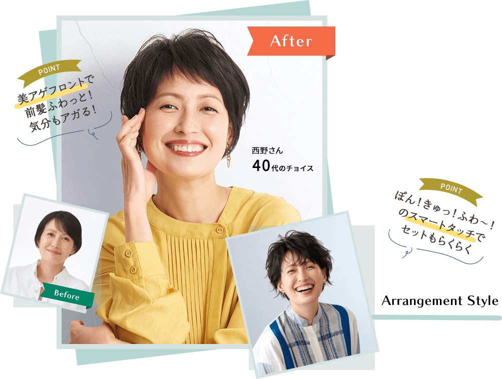 アクセントとして「ポイントメッシュ」髪に立体感を出す「チェックヴェント」、根元の奥行き感をだす「ヘアドゥ」で、スタイルに個性をプラス♪