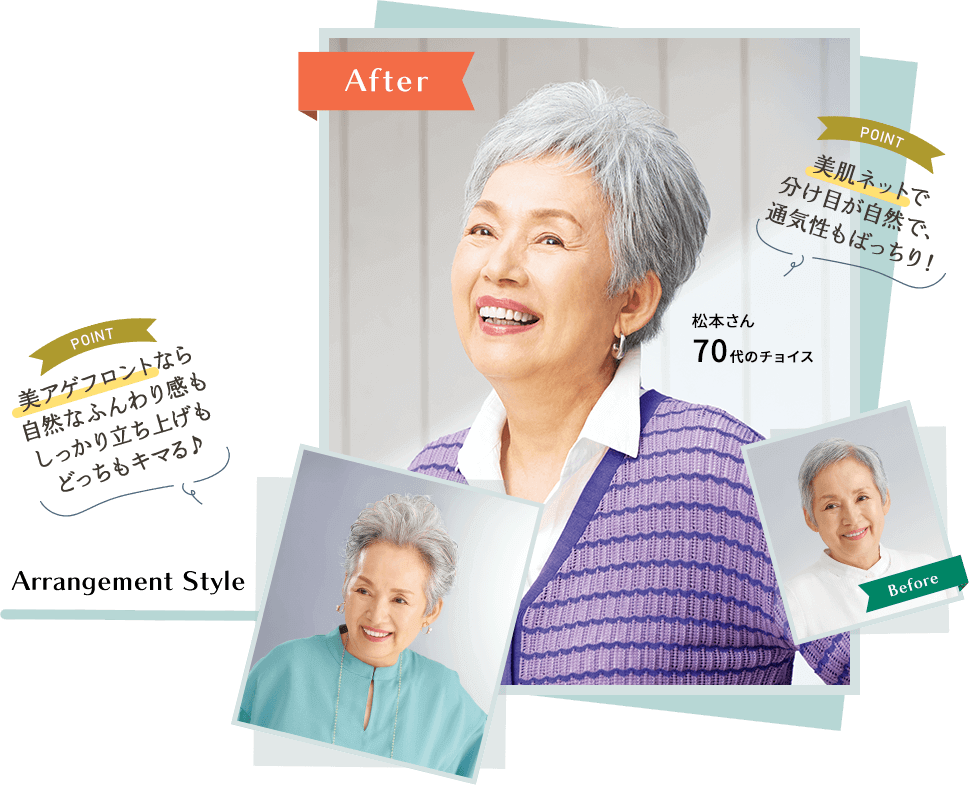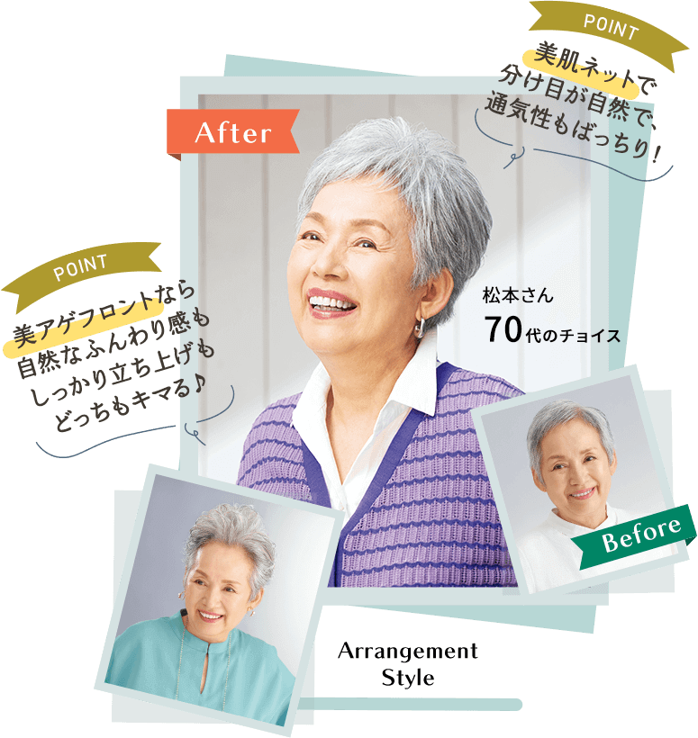 ふんわりが続く「美アゲフロント」のほか、ダウンスタイルに向いている「レギュラーレース」や自然な「ぴったりキレイレース」から選べます