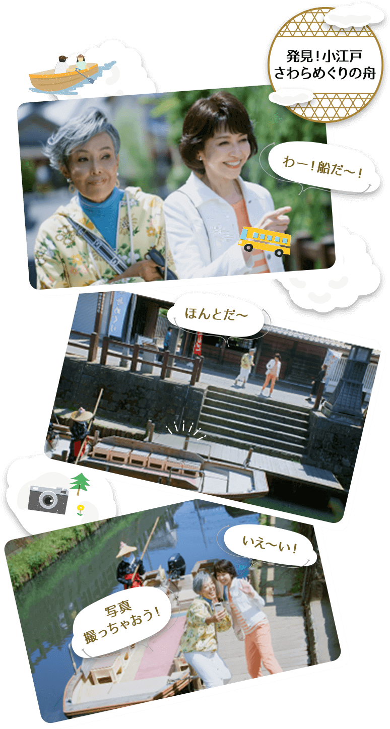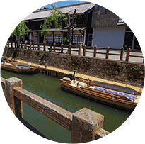 関東地方で初めて「重要伝統的建造物群保存地区」に選定された江戸風情が残る町並みをサッパ舟風の観光船から、のんびり、ゆったりと眺めることができます。