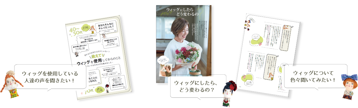 気になるお見積りや、自宅やサロンでのお手入れについてなど、気になることはなんでもご質問ください。ウィッグの事だけなく、髪に関するご相談もお気軽に。