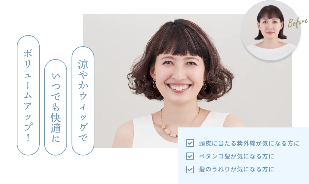 快適にお使いいただくために、お客様のご要望を丁寧に伺いながらウィッグの調整やお手入れをいたします。「こんな時はどうしたらいいの?」ど、ご不安なことがあれば何でもスタッフにご相談ください。親身になってお答えいたします。