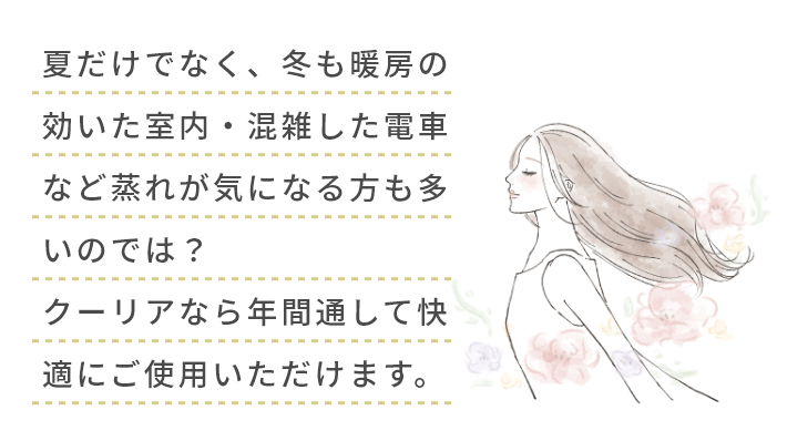 専用のお手入れ用品のほか、暑さが気になる方には「冷却スプレー」や「ウィッグ専用デオドラントスプレー」もご用意しています。