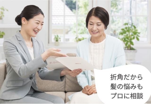 快適にお使いいただくために、お客様のご要望を丁寧に伺いながらウィッグの調整やお手入れをいたします。「こんな時はどうしたらいいの?」ど、ご不安なことがあれば何でもスタッフにご相談ください。親身になってお答えいたします。