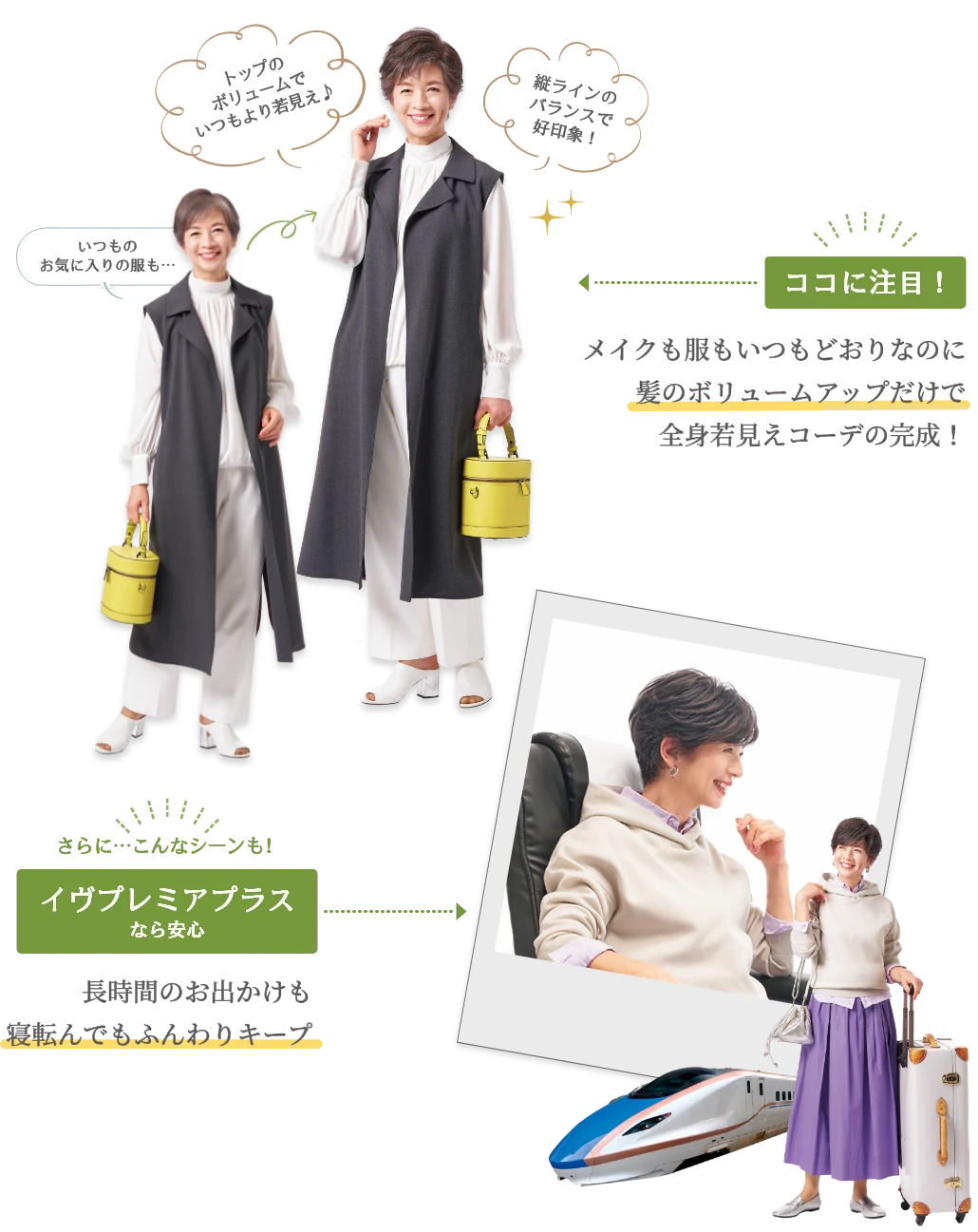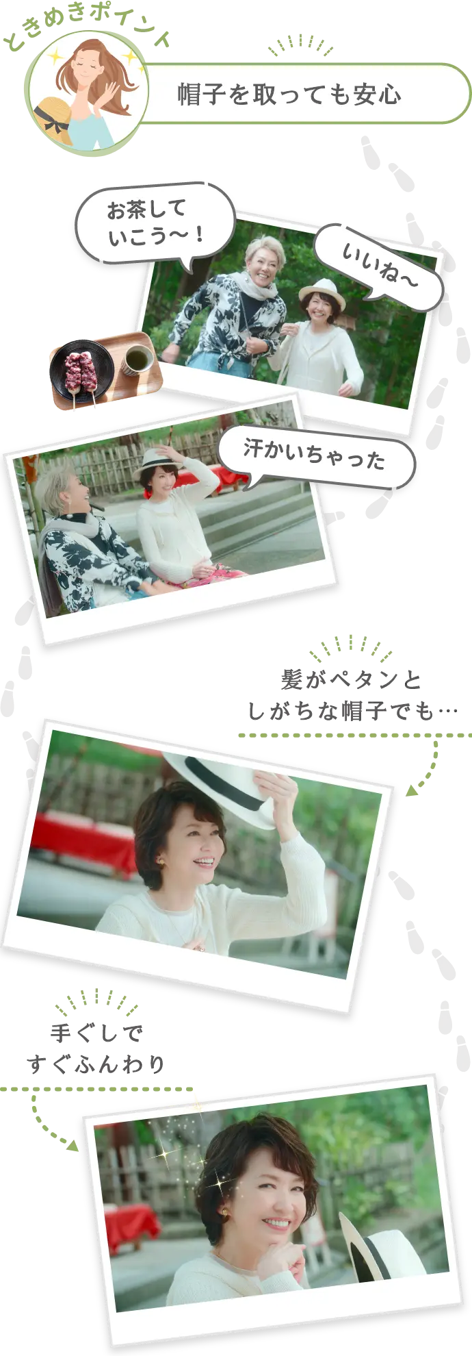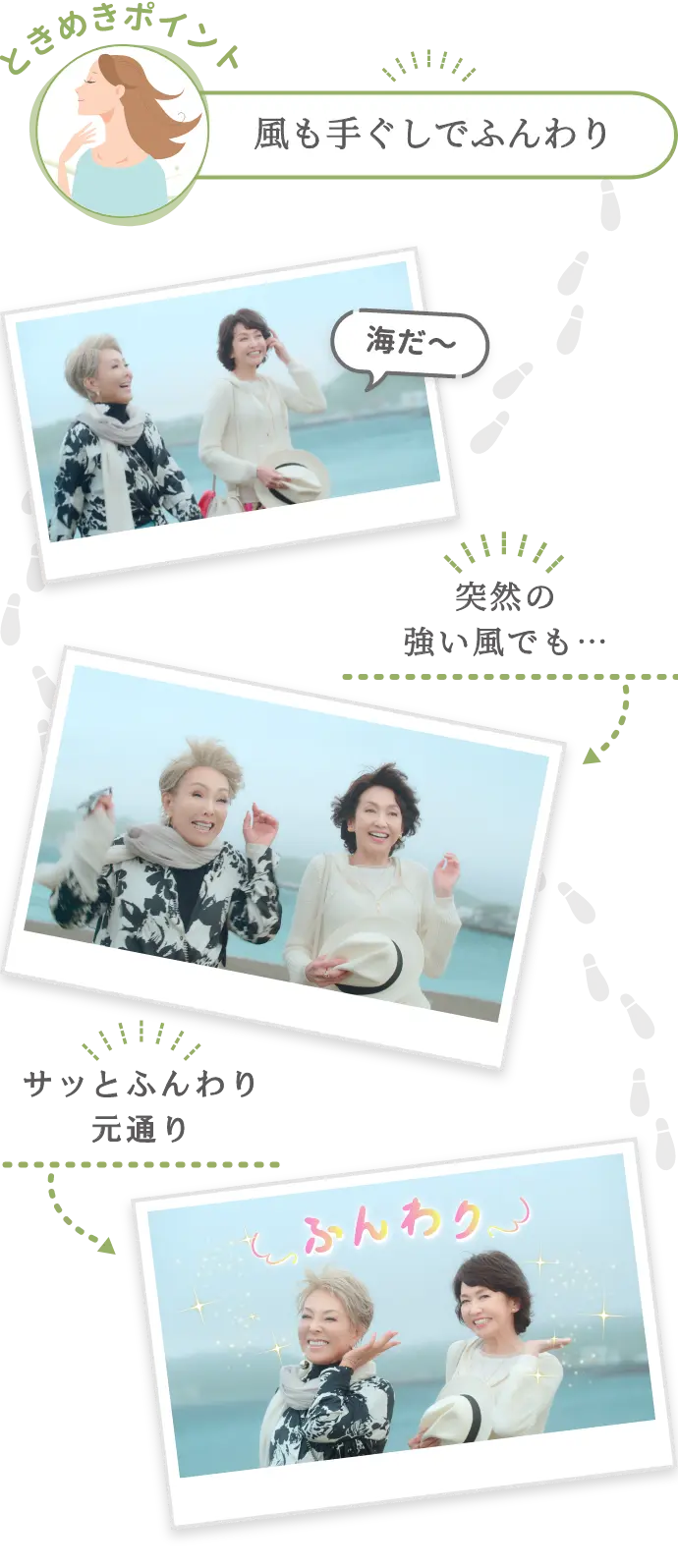 ポンッ、きゅっ、ふわっ!の「スマートタッチ」ならお取り付けもカンタン。スタイルも手ぐしでサッと決まります。※