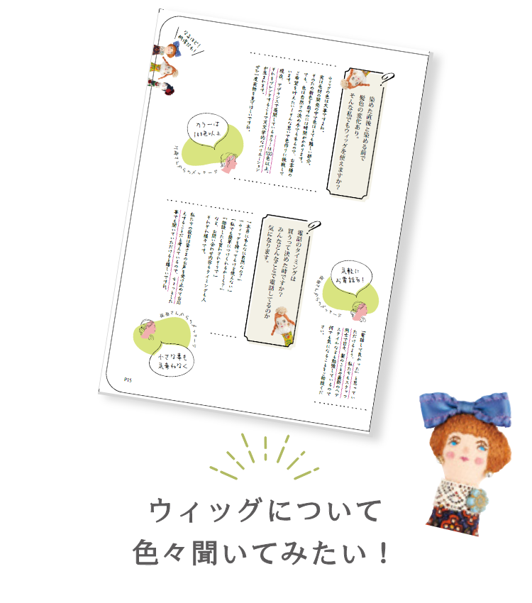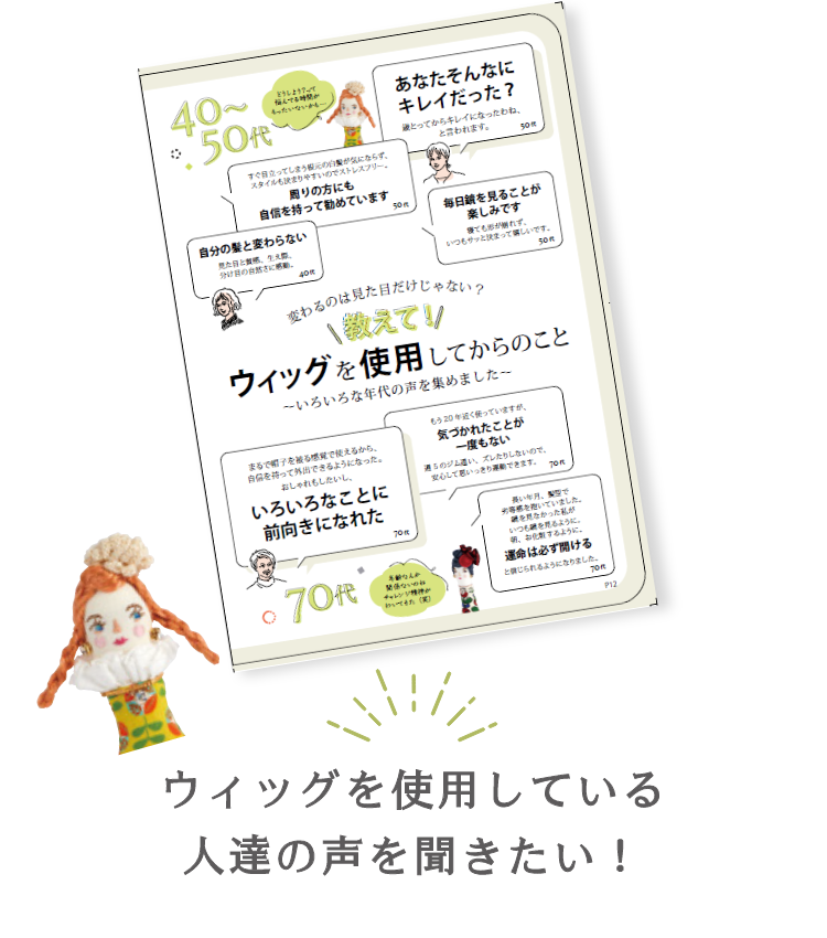 気になるお見積りや、自宅やサロンでのお手入れについてなど、気になることはなんでもご質問ください。ウィッグの事だけなく、髪に関するご相談もお気軽に。