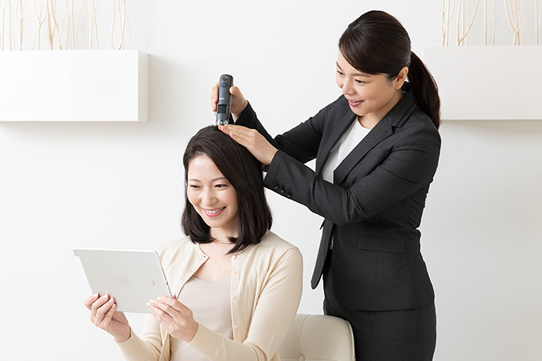 頭皮や髪の状態を事前に調べます。