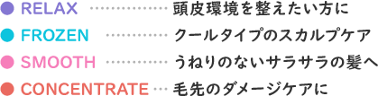 その時のお悩みに合わせて選べるスペシャルケアです。スカルプケア2種・ヘアケア2種の計4種をご用意しました。
