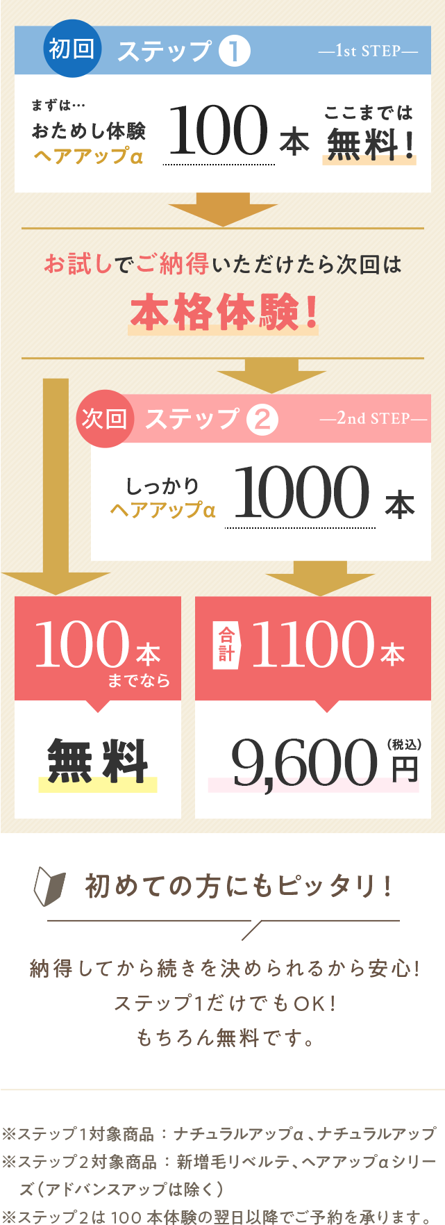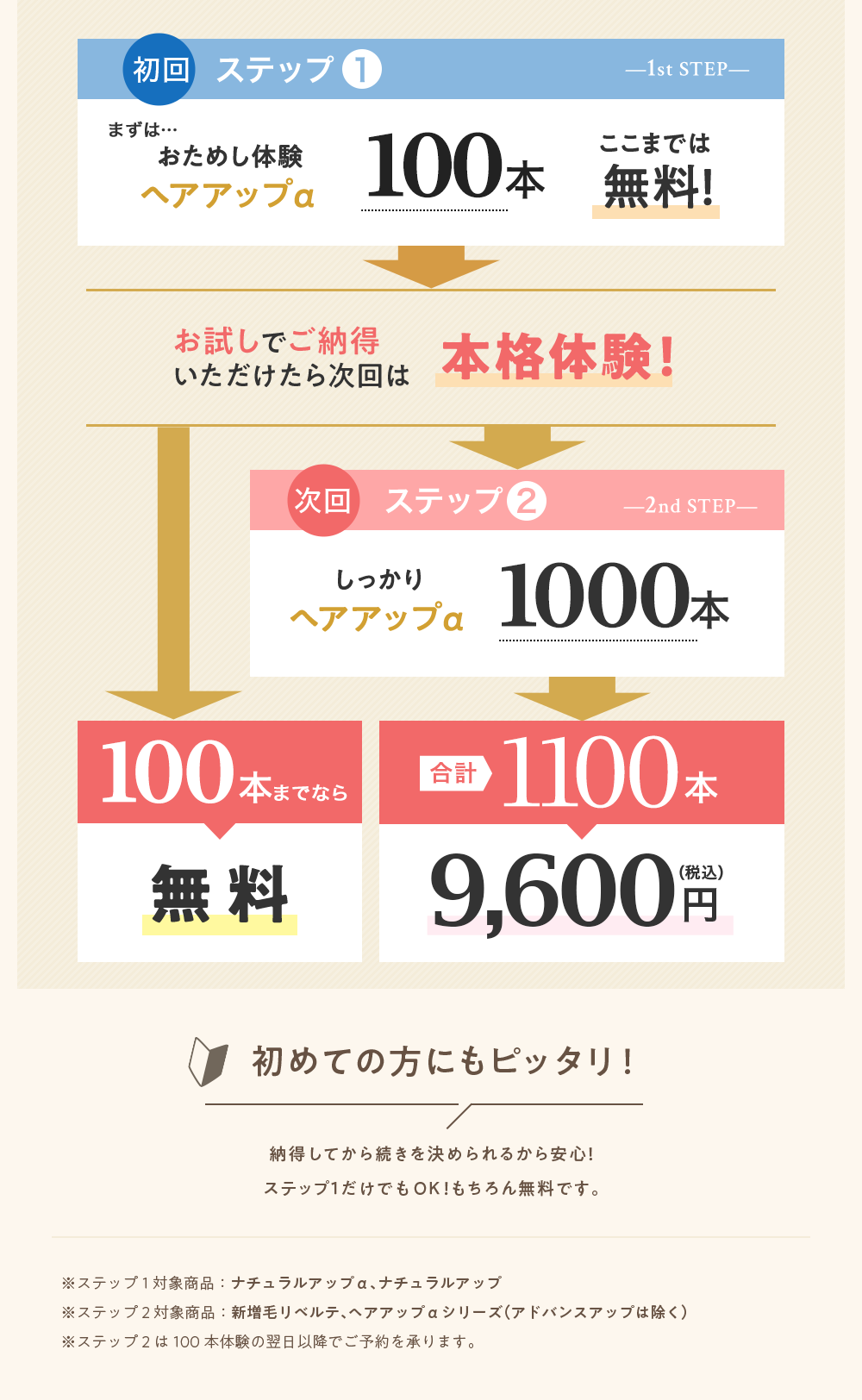 ※ヘアアップαシリーズの全ラインナップです。体験できる商品は体験毎に異なります。各体験の対象商品は各体験の条件詳細からご確認ください。