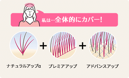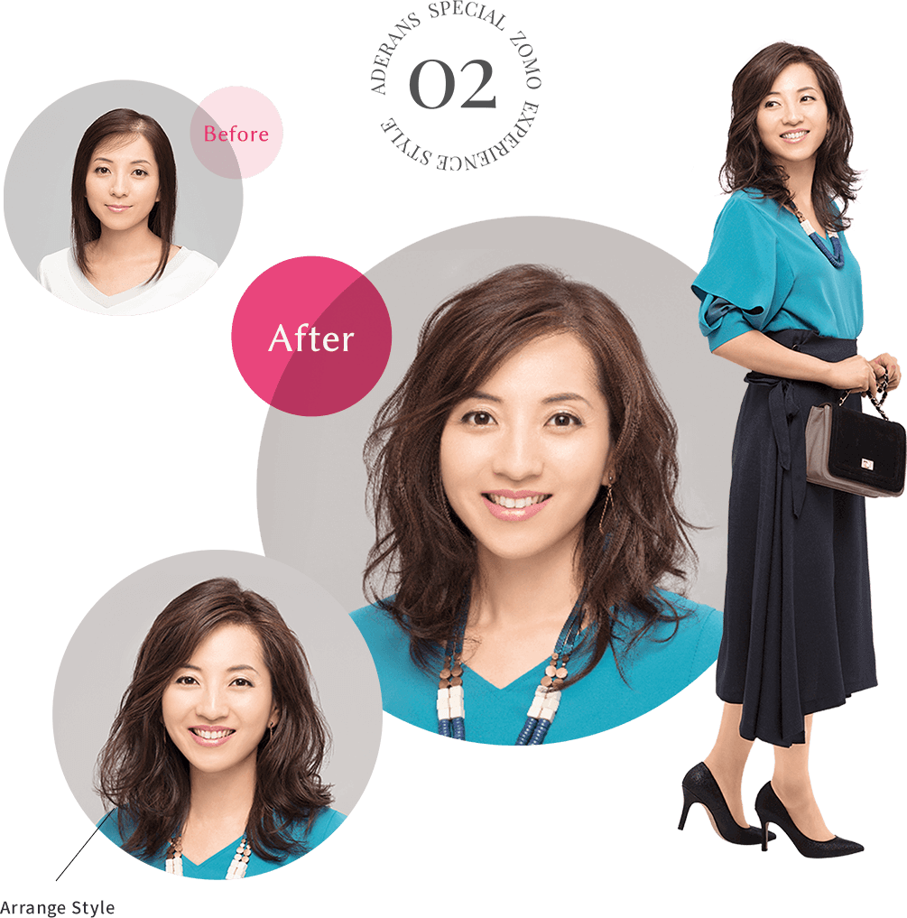 見た目の自然さはもちろん、アデランス史上最高のハリ・コシを持ち、少ない本数でも満足度の高いボリューム感を実現します。