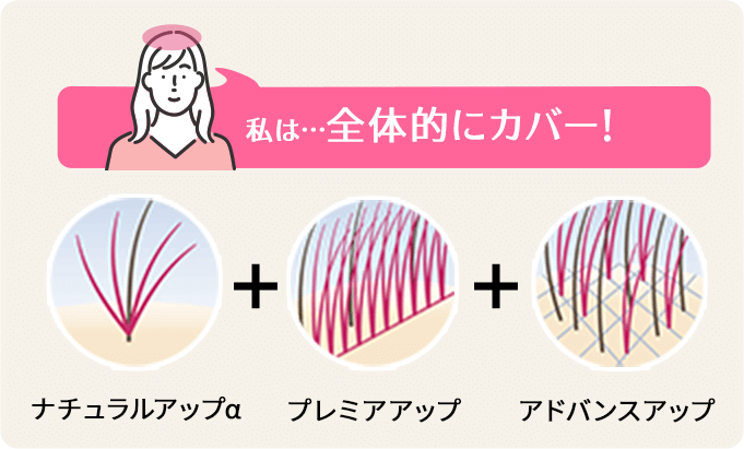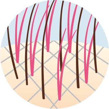 1本の髪に2~6本をプラス、気になる部分をさりげなく自然に増やします。