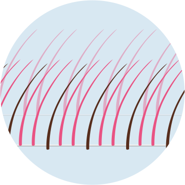 広範囲のスピーディなボリュームアップが叶うライン状増毛です。