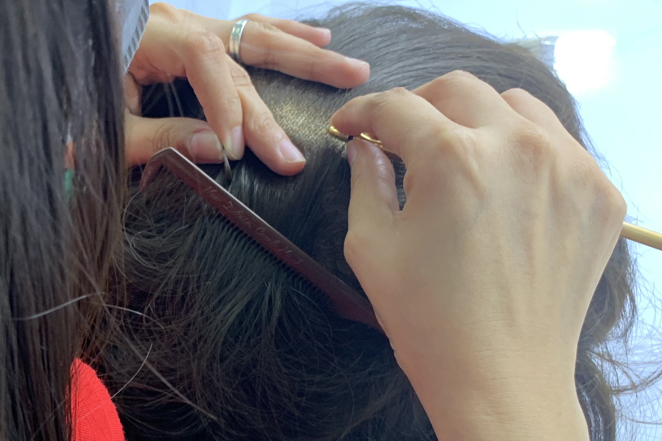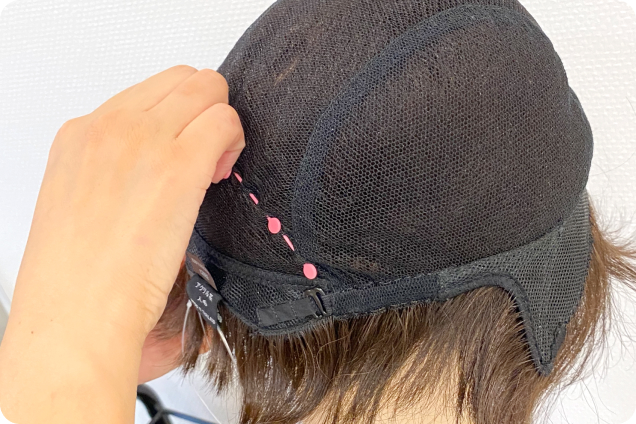 ウィッグを、その場で調整してお渡しいたします。