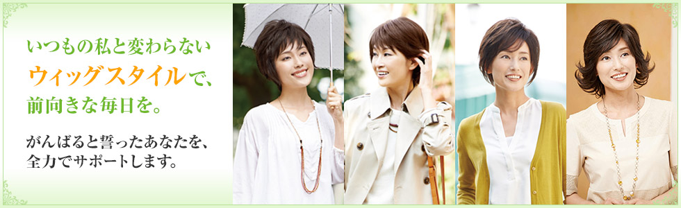 「パンフレット」と「スタイルブック」では、他にもいろいろなヘアスタイルをご紹介しています。医療用ウィッグ専用フリーダイヤル 0120-02-9696 【受付時間】9:00〜18:00 年中無休(年末年始を除く) ※スムーズなご案内のために、お問い合わせの際は、「ホームページを見た」とお伝えください。