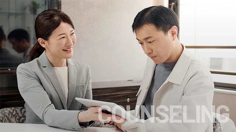 アデランスのサロンではカウンセリングに毛髪診断士®の資格を持った専門のカウンセラーが対応。 様々な機器を使用したわかりやすいカウンセリングで一人一人のお悩みに最適なアドバイスを行っています。