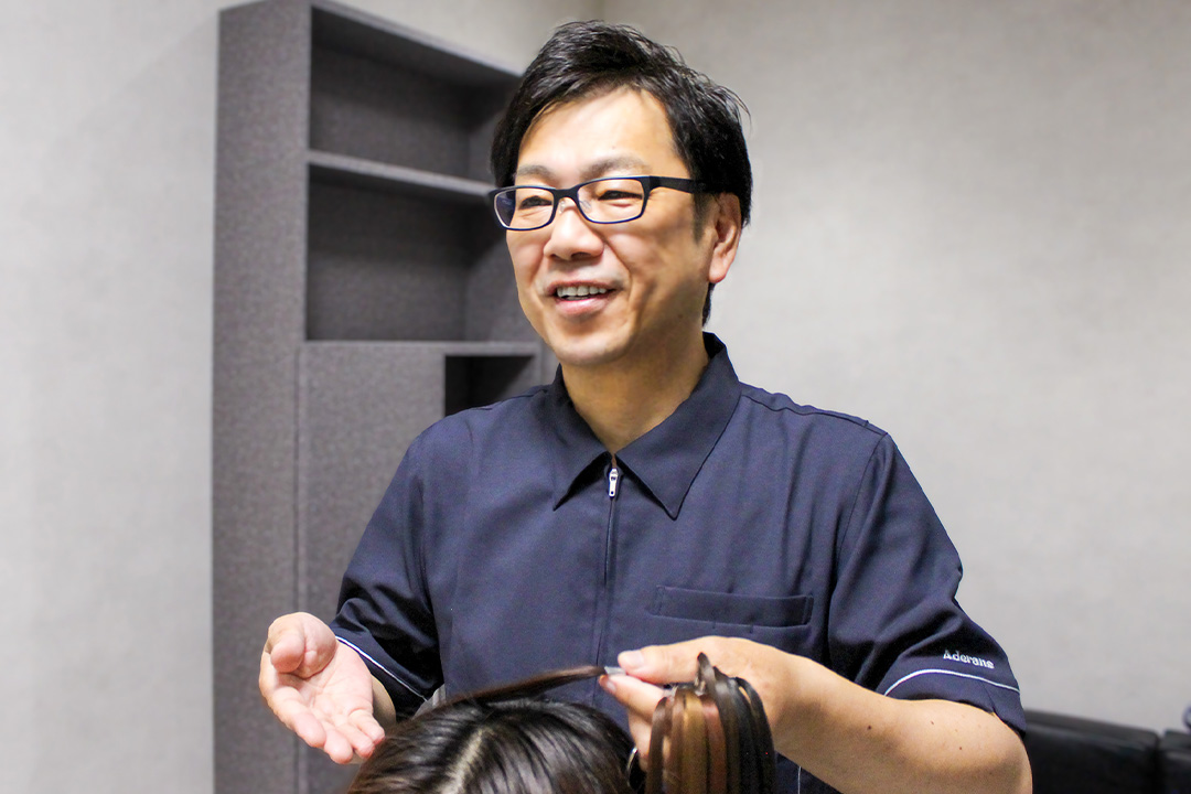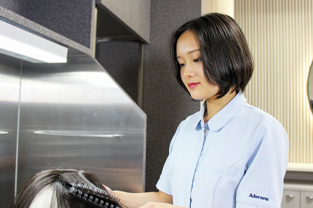 お任せください」増毛のケアや、ウィッグのお手入れだけでなく、ご自身の髪のカットや商品に合わせたスタイリングもアデランスサロンにおまかせください。