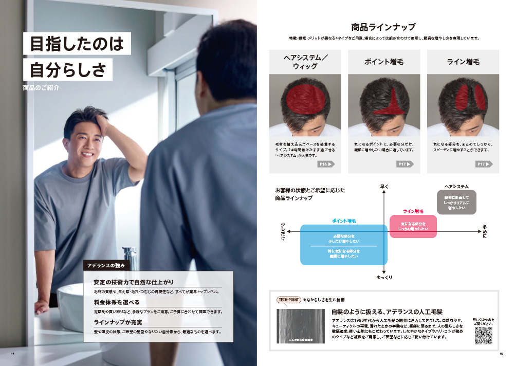 アデランスの技術や増毛後のヘアスタイルを多数掲載している
