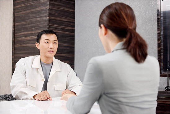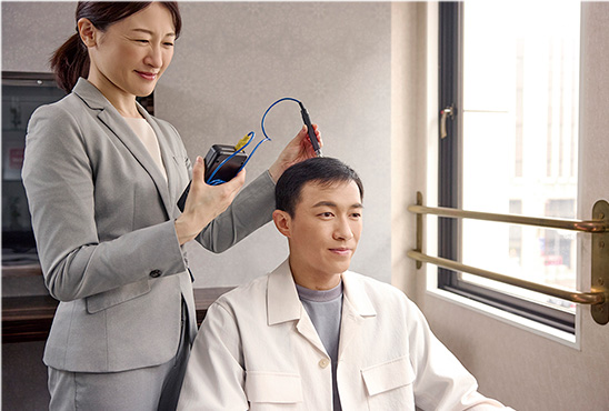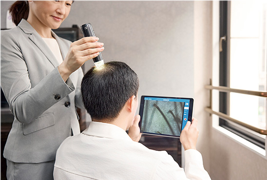 毛髪診断士®がヒアリングと専用機器によるチェック結果をもとに、お客様の頭皮の状況をご説明しつつ、適切なヘアケア/頭皮ケアのポイントなどを丁寧にご提案いたします。