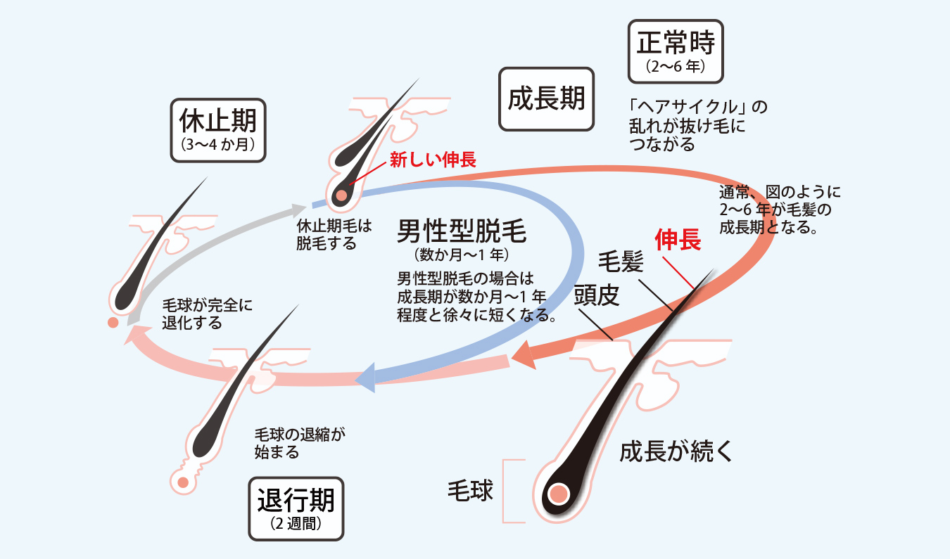 この毛周期が乱れると髪が十分に成長しきる前に抜けてしまい、脱毛につながります。