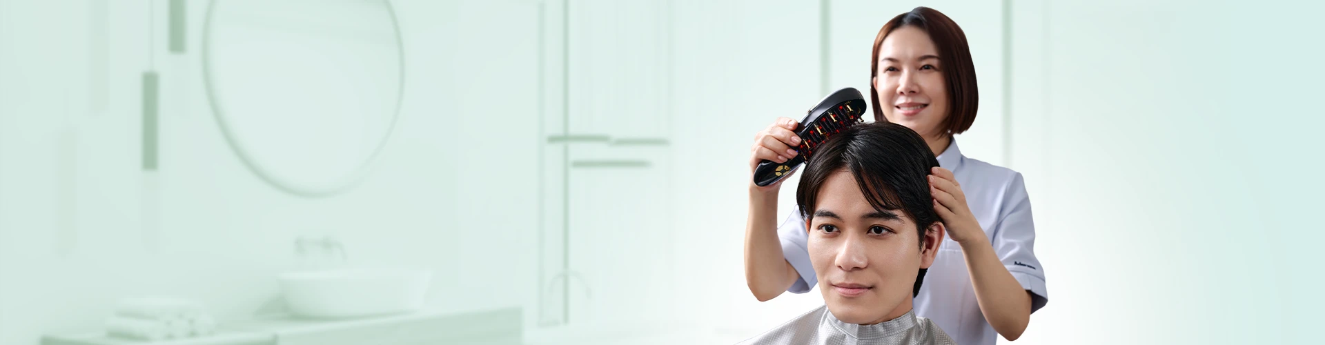 毛髪診断士®による効果的なアドバイス、熟練のプロによるスカルプケア剤・手技・機器を駆使した育毛ケア、自宅でのケアまでトータルにサポートし、あなたの髪を支えます。