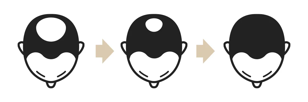 たとえば、生え際から薄毛になる方は目立たないように頭頂部から生え際に向けて増やす。