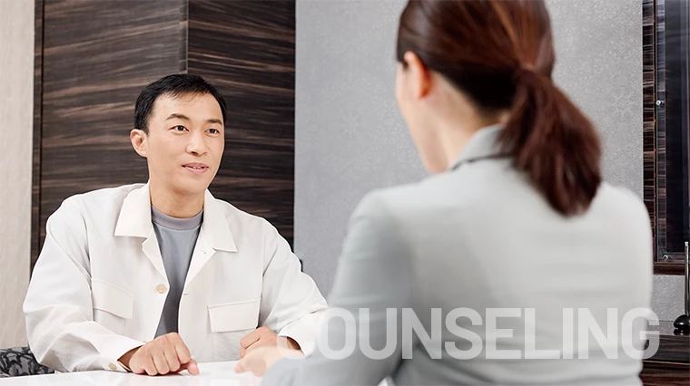 毛髪診断士Ⓡの資格を持つカウンセラーが、髪のお悩みや増やしたい部分などを丁寧にお聞きします。どんなお悩みやご質問でも、お気軽にお話しください。