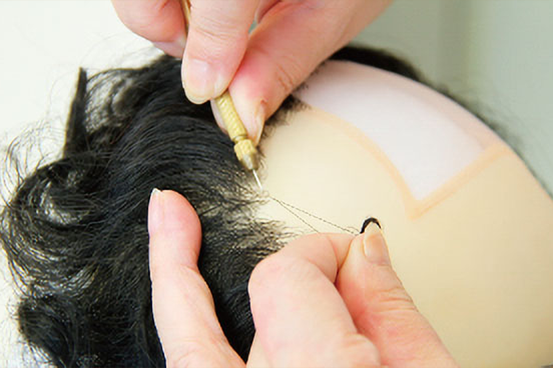 頭の形に合わせて作製したベースに、熟練した技術者が1本1本手作業で毛髪を植えていきます。