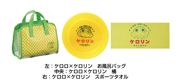 ケロロ×ケロリン桶、お風呂バッグ、スポーツタオルとのセット商品など
