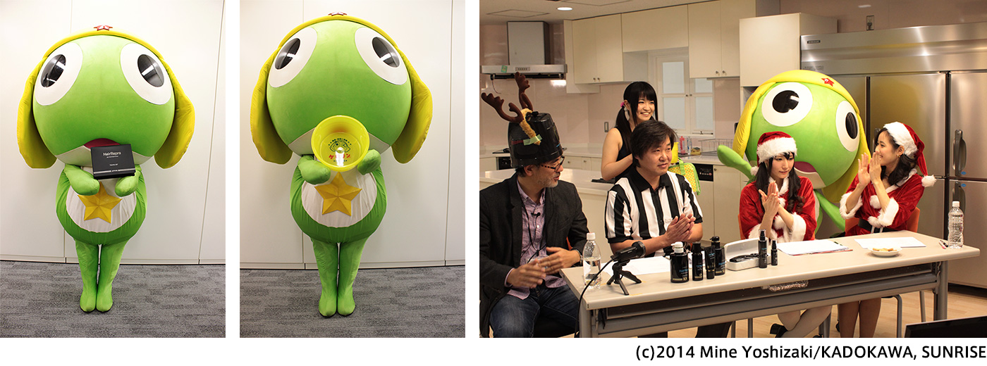 株式会社アデランス(本社:東京都新宿区、代表取締役会長兼社長 根本 信男)は、2014年12月9日(火)、ニコニコ動画内で放送している育毛企画「毛-1グランプリ」の公式応援キャラクターとしてフラッシュアニメ「ケロロ」の主人公“ケロロ軍曹”(URL:http://www.keroro.com/flashanime/)を起用しました。これを記念して、アデランスとケロロ軍曹のコラボグッズ「ヘアリプロ毛66(ケロロ)セット」を2014年12月9日(火)から、「毛-1プロジェクトショップ(キャラアニ.com内)」(URL:http://www.chara-ani.com/fair.aspx?id=160)、「ケロロWEBショップ」(URL:http://www.keroro-shop.com/)にて販売開始いたしました。