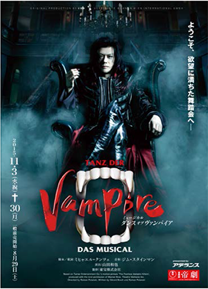 ヴァンパイア・ミュージカルの傑作「ダンス オブ ヴァンパイア」は、1967 年に公開されたロマン・ポランスキー監督の映画「吸血鬼」を舞台化した作品です。 1997 年にウィーン、ライムント劇場にて初めて公演され、2006年帝国劇場で日本初演を迎えました。「エリザベート」「モーツァルト!」「レディ・ベス」と日本でも絶大な人気を誇るウィーン生まれのミュージカルのクリエイターを務めるミヒャエル・クンツェが脚本・歌詞を担当し、映画「ストリート・オブ・ファイヤー」のテーマ曲の作曲者=ジム・スタインマンが音楽を担当しています。