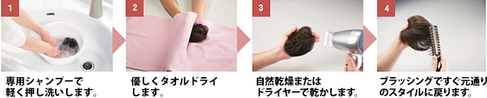 ■独自開発の人工毛髪「ナチュールヘア」はご自宅でお湯でも洗えてお手入れ簡単