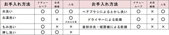 お手持ちのウィッグのヘア素材をお確かめの上、お取扱いにはご注意ください。
