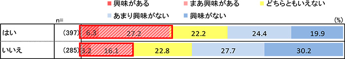 ウィッグへの興味の度合いを、ヘアスタイルのイメージチェンジで失敗した経験がある人とない人とで比較しました。ウィッグに「興味がある」「まあ興味がある」と答えた人は、失敗経験のない人が19.3%であるのに対し、失敗経験のある人は33.5%となり、イメチェンに失敗したことがある人ほど、失敗する心配がなくイメチェンができるウィッグに興味を持っていることが分かりました。