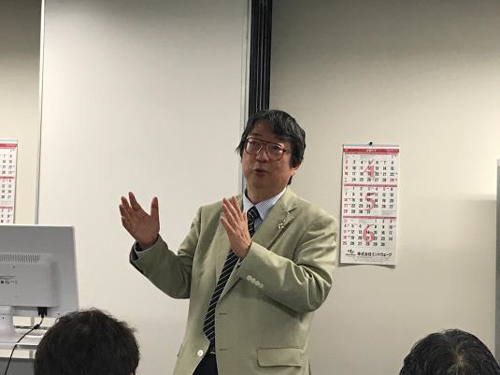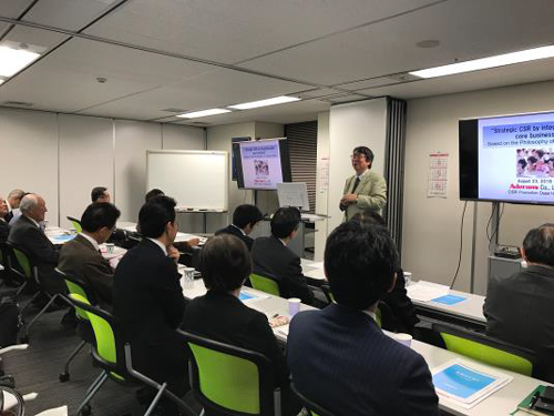 日本経営倫理学会CSR研究部会で事例報告をする、執行役員 箕輪睦夫
