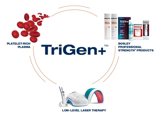 「TriGen+™ with PRP」は、非外科的な対処療法です。①多血小板血漿注入(PRP)療法、②低出力レーザー療法、③ミノキシジルを含むボズレーのプロフェッショナル・ストレングス製品®を組合せています。3つの治療オプションを併用することで、患者は1つの治療オプションのみを使用する場合よりも効果的な結果を期待することができます。特にPRP療法は、抜け毛対策において最新の非外科的解決法のひとつで、現在もっとも注目を集めている対処法の一つです。「TriGen+™ with PRP」を2016年12月に全米26クリニックで提供を開始以降、同サービスの売上は、前月比30%増で増加しています。