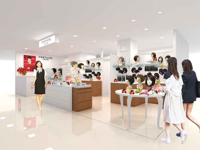 女性用ウィッグブランド「フォンテーヌ」は、レディメイドウィッグ(既製品)ならびに医療用ウィッグを取り扱う「フォンテーヌ」ショップと、これらに加えて、オーダーメイドウィッグまでを幅広く取り扱う「フォンテーヌ クチュール」を、全国の百貨店や直営店に展開しています(全国189店舗 2017年6月現在)。フォンテーヌ クチュールでは、レディメイドウィッグからオーダーメイドウィッグまで幅広いラインナップでお客様の様々なご要望にお応えします。ウィッグでよりおしゃれを楽しんでいただけるくつろぎの空間を提供し、おもてなしの心で全てのお客様をお迎えします。また、ウィッグの使い方や調整、メンテナンスはもちろんのこと、他社でウィッグを購入されたお客様のアフターメンテナンスサービスも実施しておりますので、ショッピングやお食事の合間にお気軽にお立ち寄りいただけます。